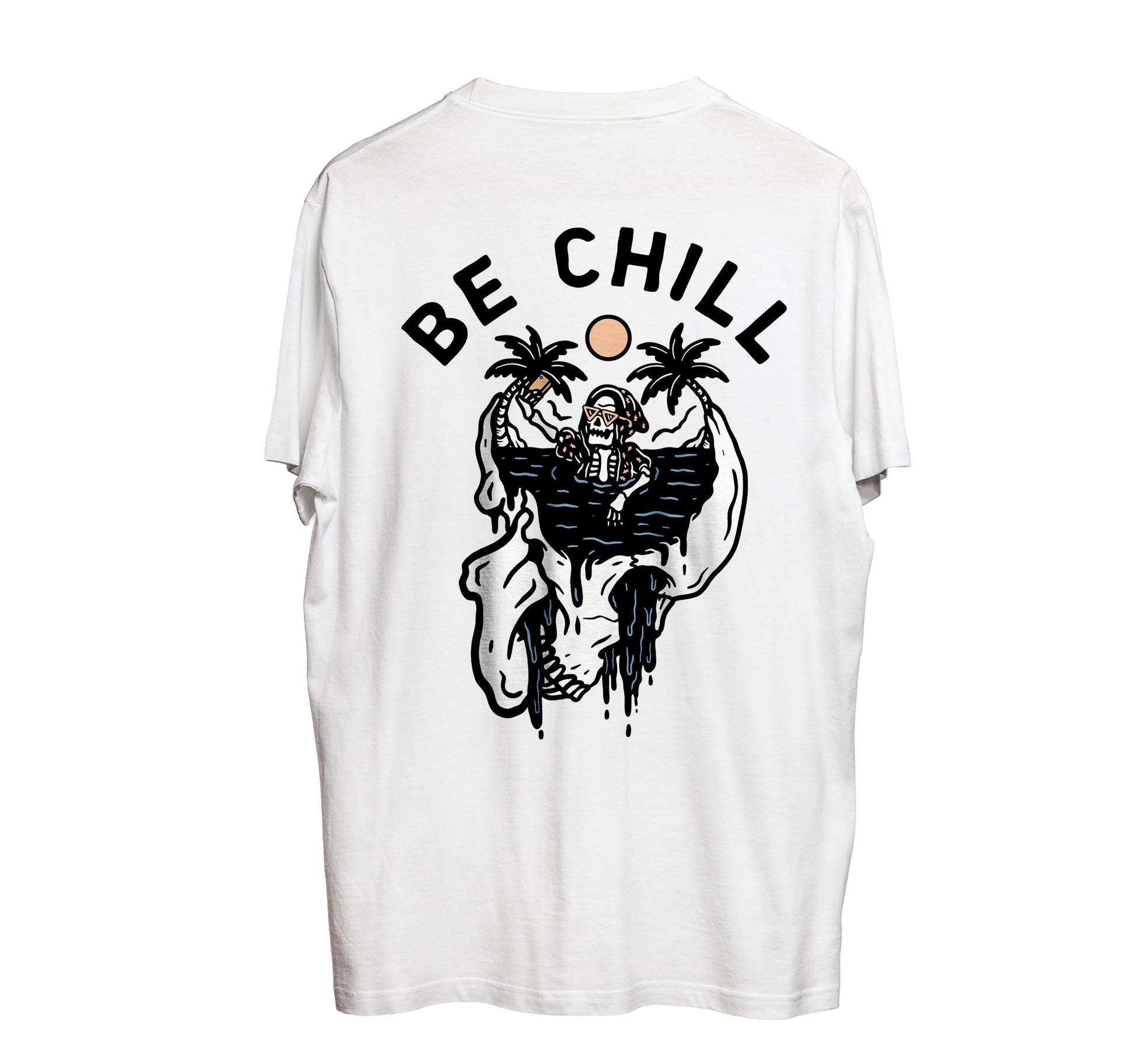 Featuring our Be Chill text design as a chest print and a full graphic on the back, this tee is built for relaxed days, warm nights, and anyone committed to keeping the vibe calm.