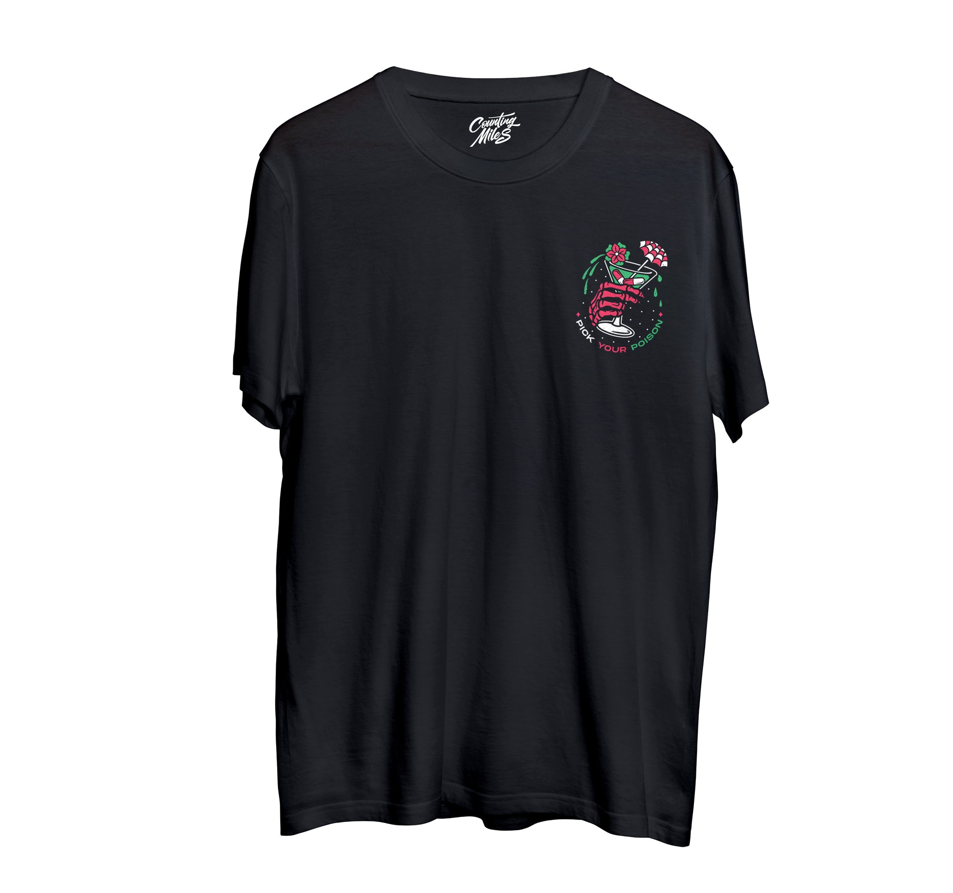 Featuring the bold Counting Miles “Pick Your Poison” design across the back and a smaller chest print on the peck, this tee blends effortless style with tattoo-inspired edge.