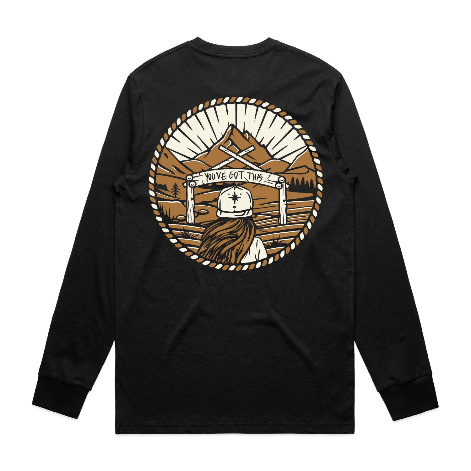 This tee channels pure confidence and adventure. Featuring a powerful design of a woman in a snapback standing tall as she looks out over sweeping mountain ranges, it pairs striking artwork with the motivating tagline “You’ve Got This.” It’s a bold reminder to tackle whatever comes your way—whether you’re conquering trails or taking on everyday challenges. Strength, style, and unstoppable energy, all in one go-to piece.